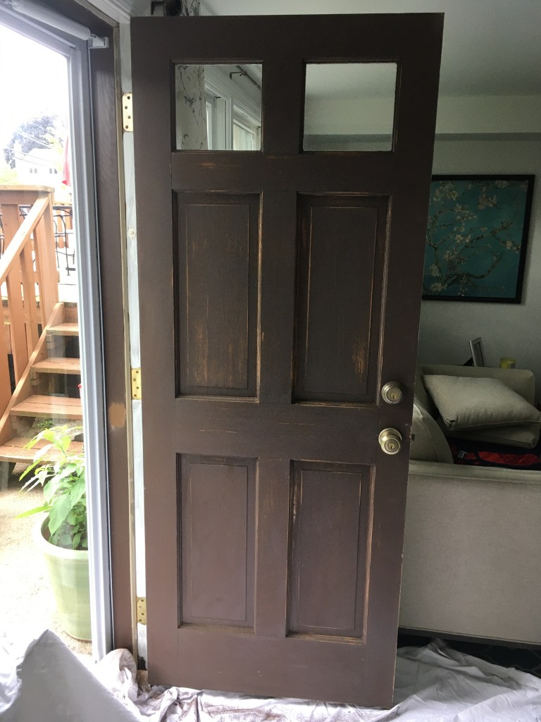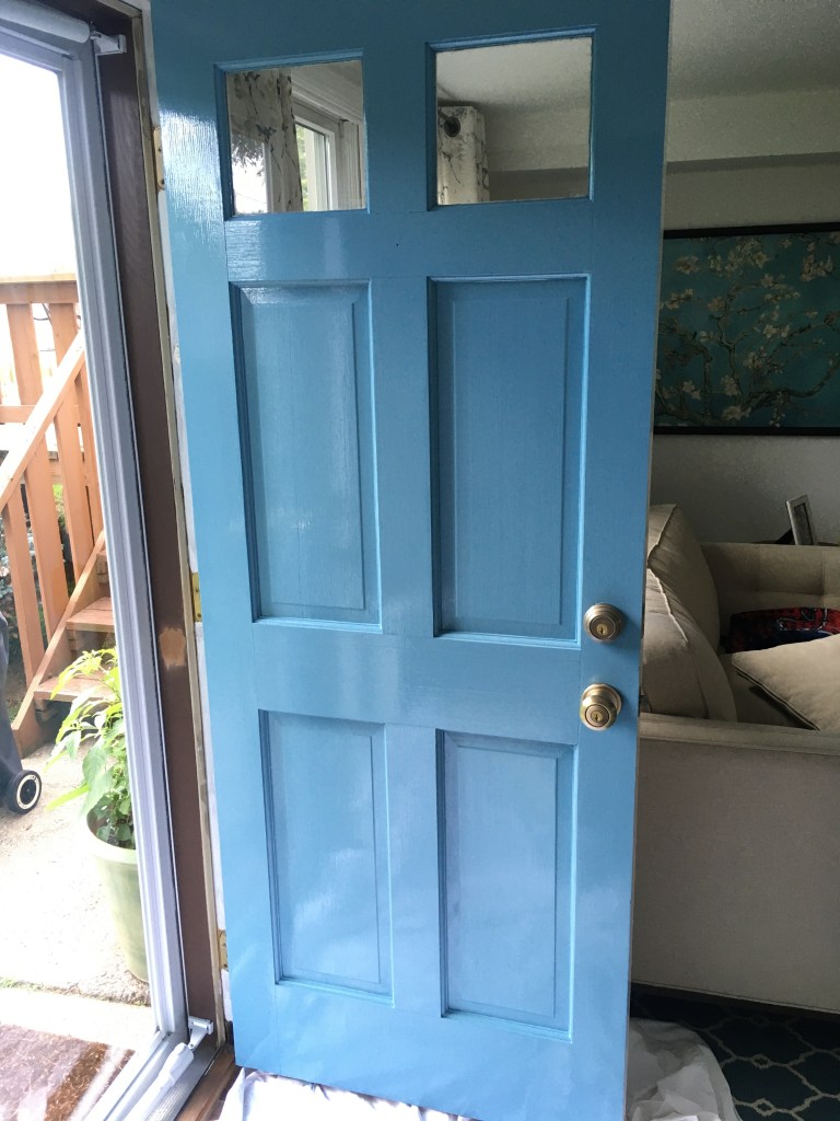 Door: You’ll need sand paper (medium and fine), primer and paint. I used Fine Paints of Europe in Wash Basin (satin finish). This project took one coat of primer and two coats of paint.