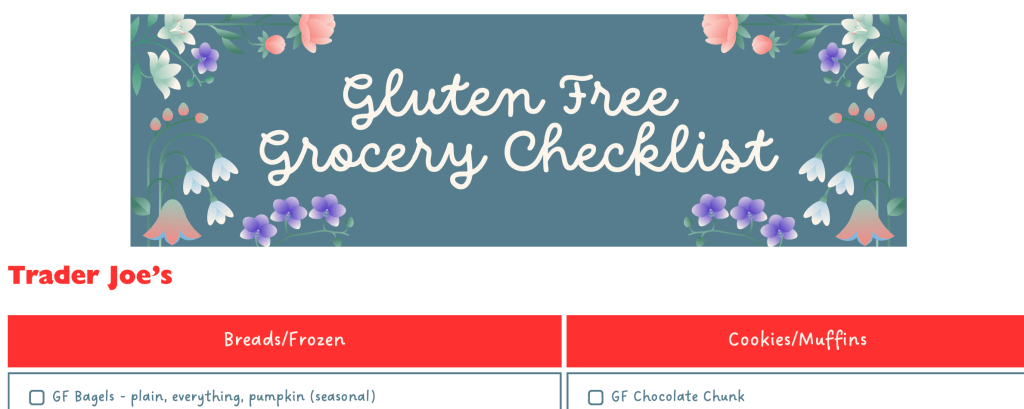 This GF shopping checklist contains over 40 recommended products that can be purchased at Stop & Shop, ShopRite, Trader Joe’s, Whole Foods and Wild By Nature, all organized by store and product type. Enjoy!