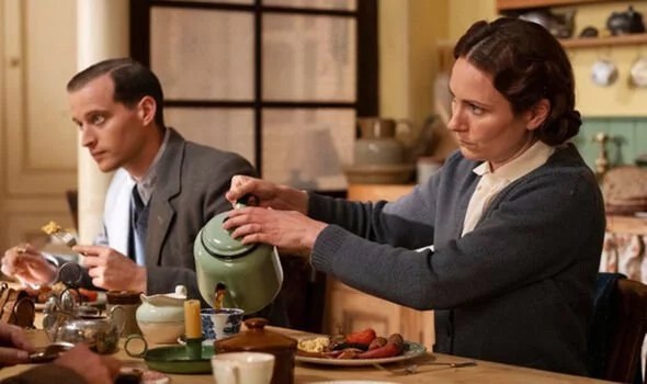 The show creates one of the coziest atmospheres on television. In the Skeldale House kitchen, rustic brown wood furnishings are surrounded by delicately patterned wall paper and sage green chair railing and molding. The old fashioned (and also sage green) teapot always makes an appearance, as do dainty cups and saucers as Mrs. Hall, the housekeeper and cook, serves breakfast. Watching the characters chat over their morning tea makes me want to climb through the screen and join them. The evening scenes usually involve the characters sitting in cozy, fluffy chairs by a fireplace, dogs lying at their feet while they chat over small glasses of sherry. I’ve never had sherry in my life, but they make drinking it look so delicious. It’s all very snug and inviting.