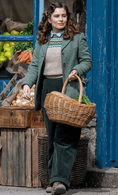 In addition to the amazing sets, most of the fashion on the show is beautiful and comfortable-seemingly contradictory terms, but not so on this series. Oftentimes, male and female characters are wearing sweaters, tweed pants or skirts or even more comfy, a pair of corduroys and boots, but on this show each item is a work of art. Warm browns, blues, greens and greys make up the colors in their corduroy collections. The women’s sweaters on the show are simply gorgeous – Muted pink, slate blue, burgundy, soft green and pale yellow are just some of the beautiful colors used to create the pieces, many with slightly puffed or pleated shoulders, adding a touch of femininity to the look. If any manufacturers are reading this, please bring back these styles of sweaters (in all natural fibers) please!